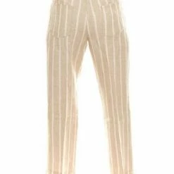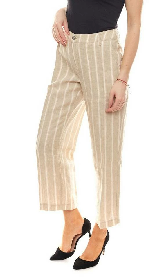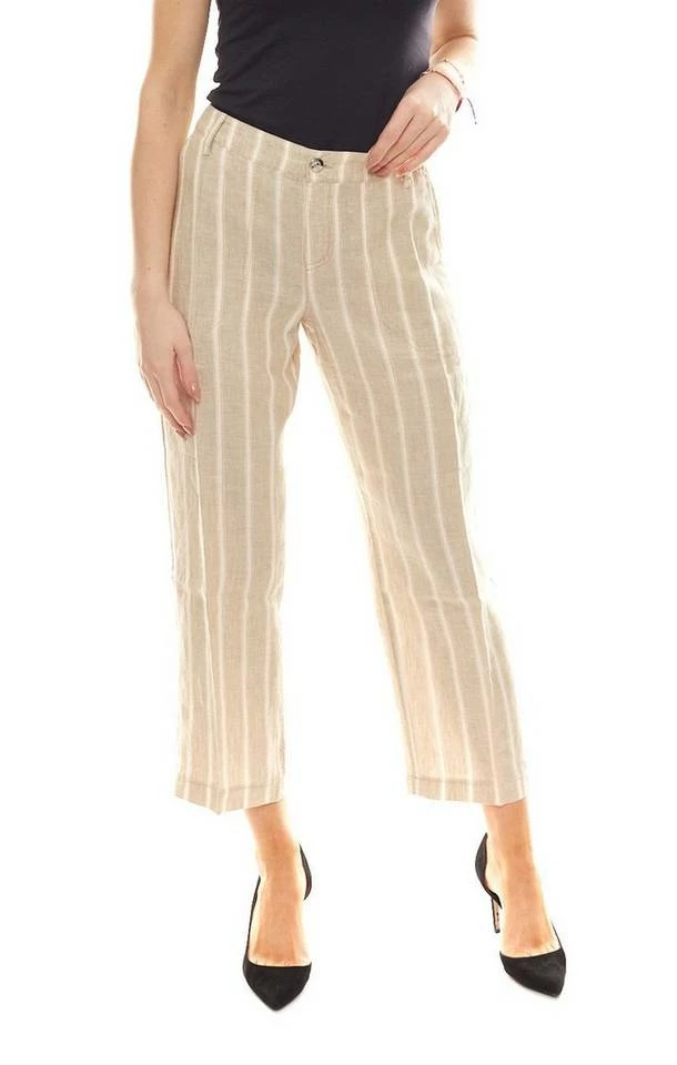 MAC Hose 7/8 Leinen-Hose luftige Damen Herbst-Hose im Streifenmuster Beige