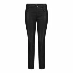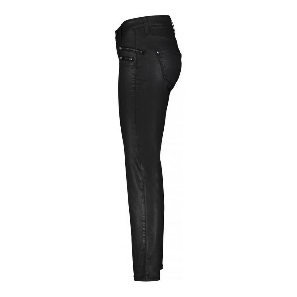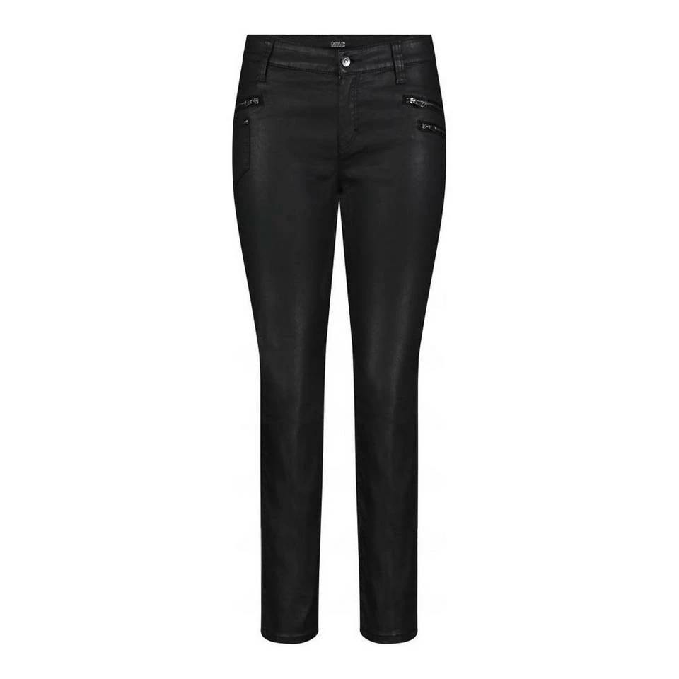Slim Fit Straight Leg normale Leibhöhe aufgesetzte Tasche sichtbare Reißverschlüsse Coated Cotton Tencel
