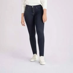 Der Dream Denim ist eine innovative Hyperstretch-Qualität mit ultimativem Formeffekt. Aufgrund des hohen Polyesteranteils verfügt die Qualität über ein hervorragendes Rücksprungverhalten und einen weichen Griff. Dies beschert jedem Figurtyp ein einzigartiges Tragegefühl und unterstreicht die weibliche Silhouette. Die Hose kann eine Größe kleiner getragen werden. Sie ist nachhaltig aufgrund des Einsatzes von wiederverwendeter Baumwolle und recyceltem Polyester aus PET-Flaschen. Die verwendete Baumwolle ist ausschließlich aus BCI-gesourcten Quellen und der BCI angegliederten Quellen wie CmiA Cotton made in Africa, ABRAPA etc.