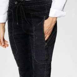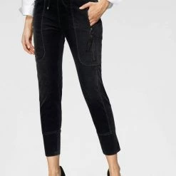 MaterialMaterialartSamtMaterialeigenschaftenelastischPflegehinweiseSchonwäscheOptik/StilStilcasualPassform/SchnittLeibhöheklassischBundabschlussangesetztes BündchenBeinabschlussangesetztes BündchenBeinformgerade, unten schmalBeinabschlussdetailskrempelbarPassformfigurbetontSchnittform LängeknöchelfreiDetailsApplikationenReißverschlüsseTaschenReißverschlusstaschenVerschlussGummizug