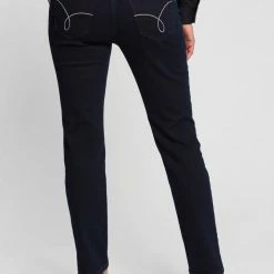 Dann schau dir mal die Slim-fit-Jeans »Angela Pipe Embro« von MAC genauer an. Die schmale Passform der Jeans schmiegt sich eng an und betont deine Beine.