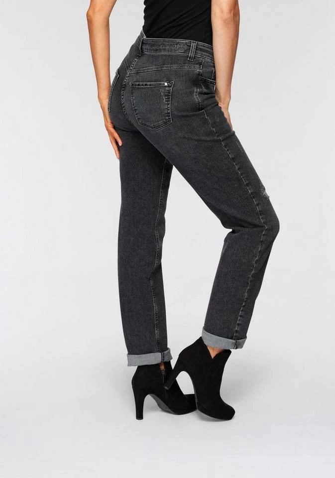 Die Straight-Jeans »Dream Authentic-Rivets« von MAC kannst du immer wieder neu kombinieren. Durch die Destroyed-Effekte , wie zerschlissene Details, entsteht ein abgetragener Look, der eine gute Grundlage für lässige Outfits ist. Die schmale Passform der Jeans schmiegt sich an deine Beine an.
